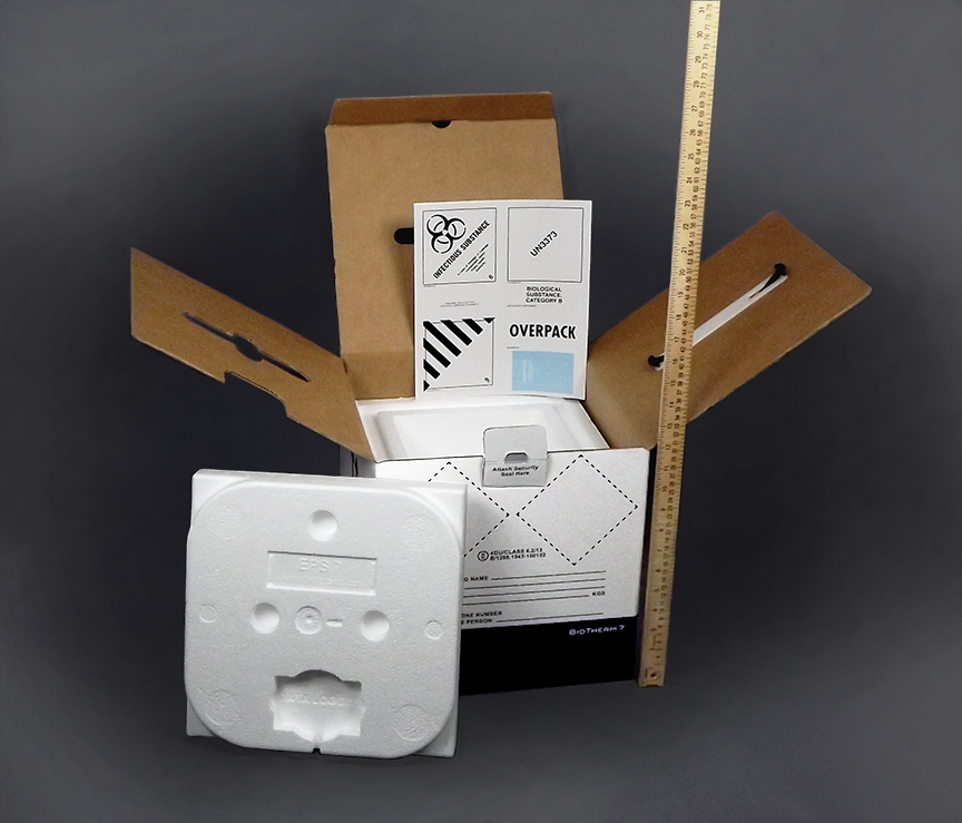The BioTherm 7 Dry Ice is a Category A and B UN3373 compliant temperature-controlled packaging system, and a complete, secure, and compliant dry ice shipping solution for sample payloads requiring deep-frozen temperatures for up to 72 hours.